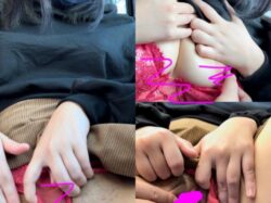 後ろの席に人がいていつバレるかわからない状況で恥じらいながらも大胆に見せてくるお姉さん☆