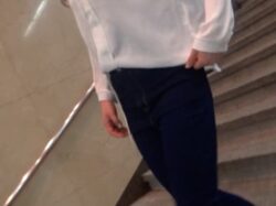 Tバック尻が張り付く躍動タイトスカート尻美女!