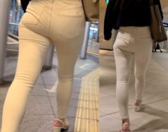 パンティラインくっきりなスキニーパンツ美女