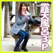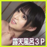 可愛い彼女と猫Cafeデートの後、露天風呂で3Pセックス