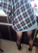 【4K】妻の逆さ青チェ+デニムミニ