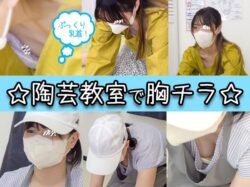 #79【陶芸中の胸チラ】講師も思わず凝視!JDちゃんのDカップ若おっぱい/人妻パフィーニップル胸ちら